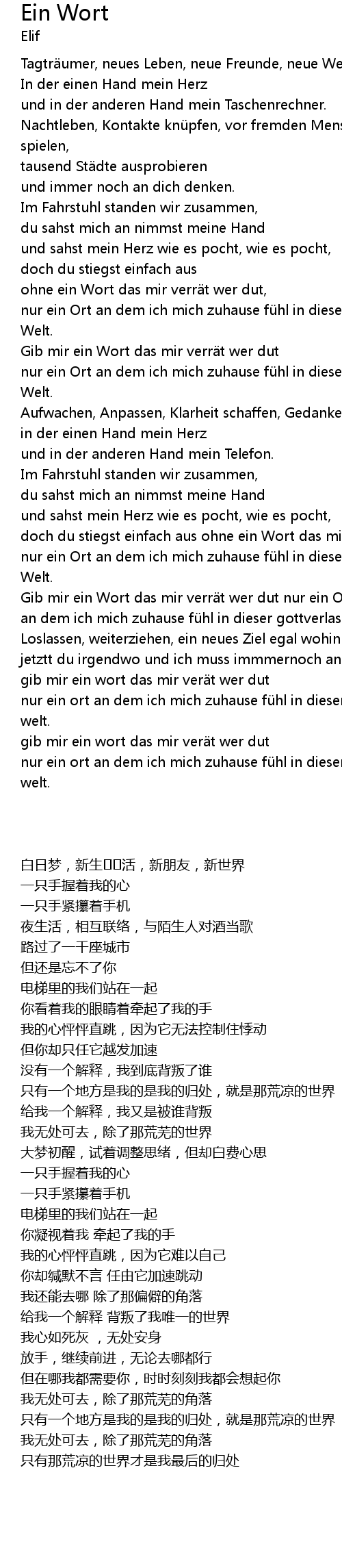 | [01:13.86] | Gib mir ein Wort das mir verr t wer dut |