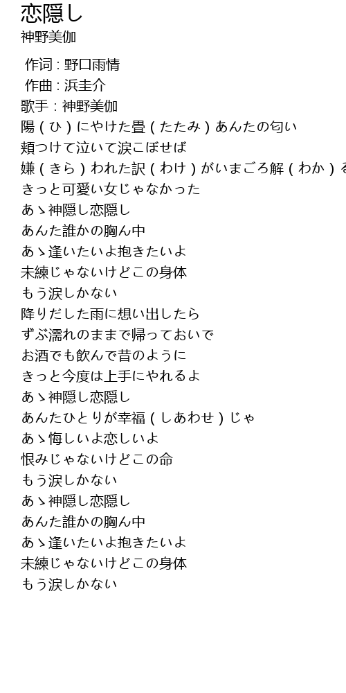 あゝ神隠し恋隠し |