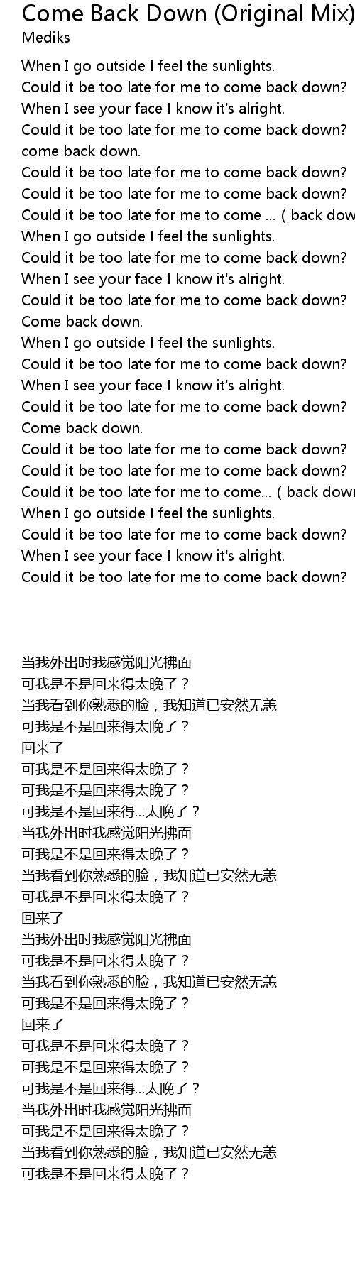 | [01:33.30] | Could it be too late for me to come back down? |