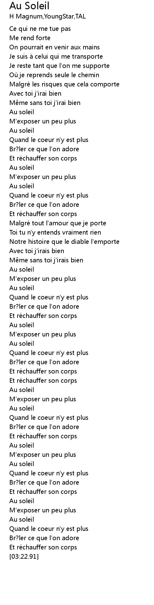 | [01:27.40] | Malgré tout l'amour que je porte |