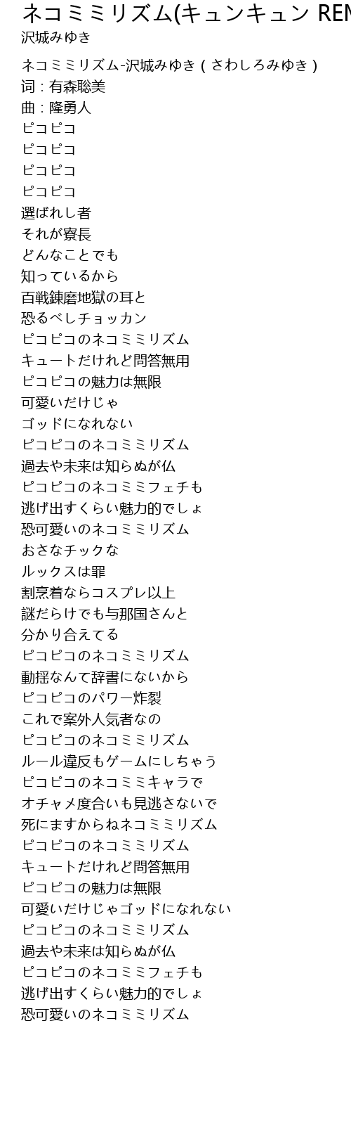 | [00:00.401] | ネコミミリズム-沢城みゆき(さわしろみゆき) |