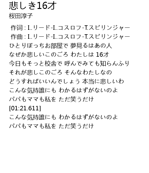| [00:24.752] | なぜか悲しいこのごろ わたしは 16才 |