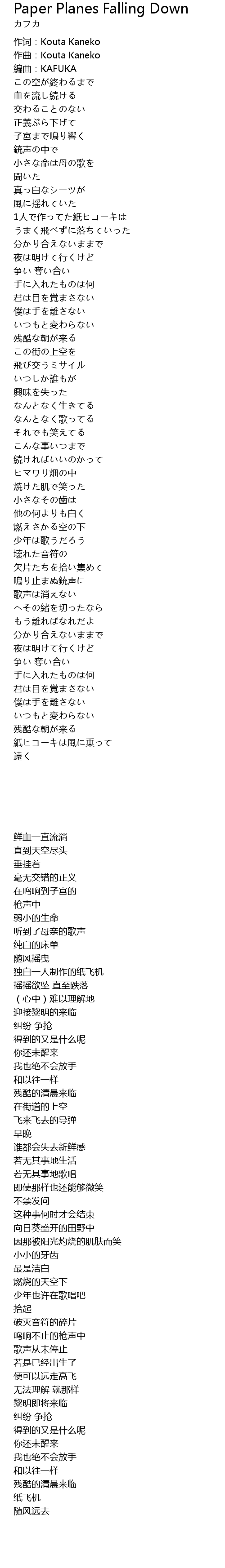 | [00:09.05] | zuo ci: Kouta Kaneko |