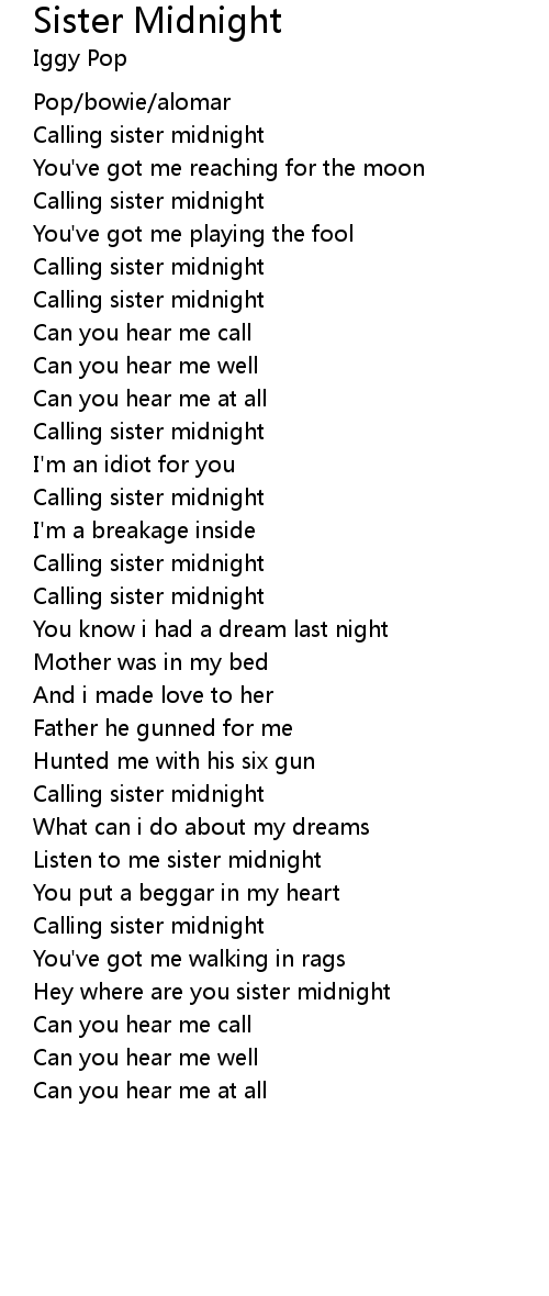 Calling sister midnight |