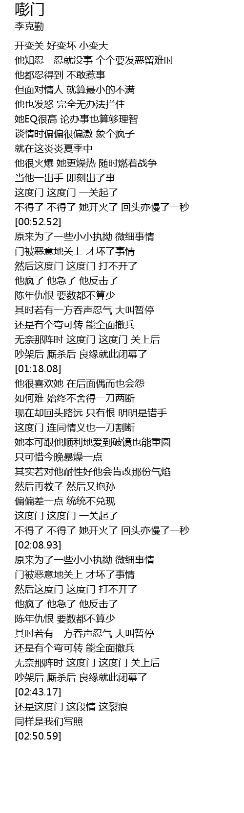 | [02:37.07] | 无奈那阵时 这度门 这度门 关上后 |