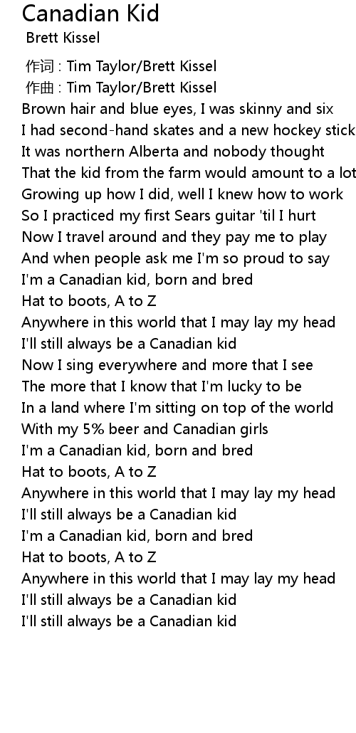| [02:07.308] | I' ll still always be a Canadian kid |