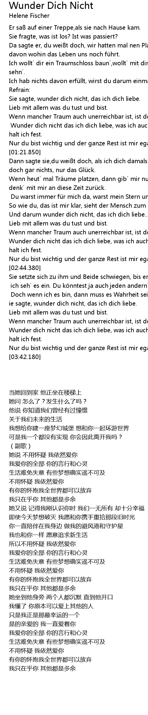 | [00:45.270] | Sie sagte, wunder dich nicht, das ich dich liebe. |