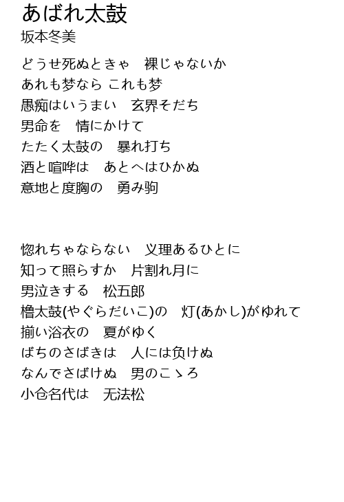 | 橹太鼓(やぐらだいこ)の 灯(あかし)がゆれて | |