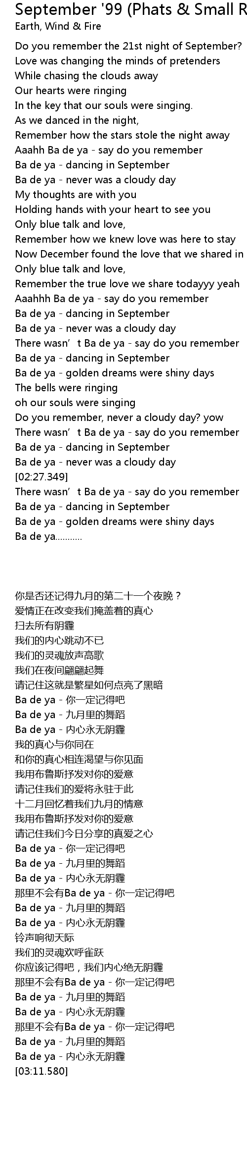 | [01:42.444] | There wasn' t Ba de ya say do you remember |