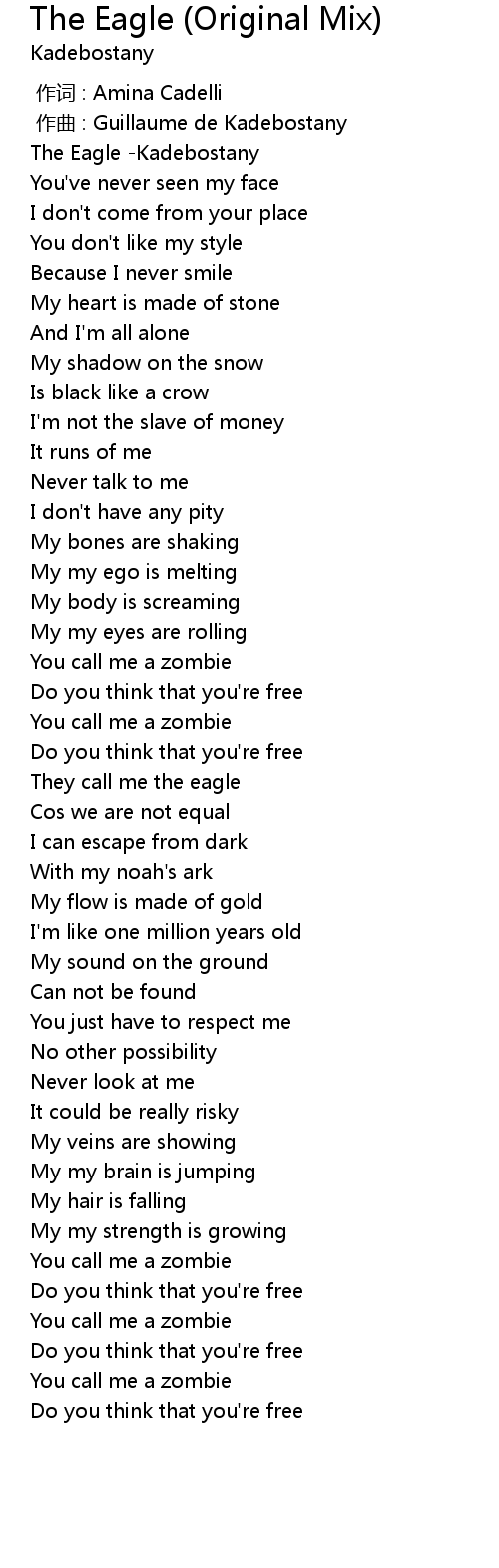 | [00:00.528] | The Eagle -Kadebostany |