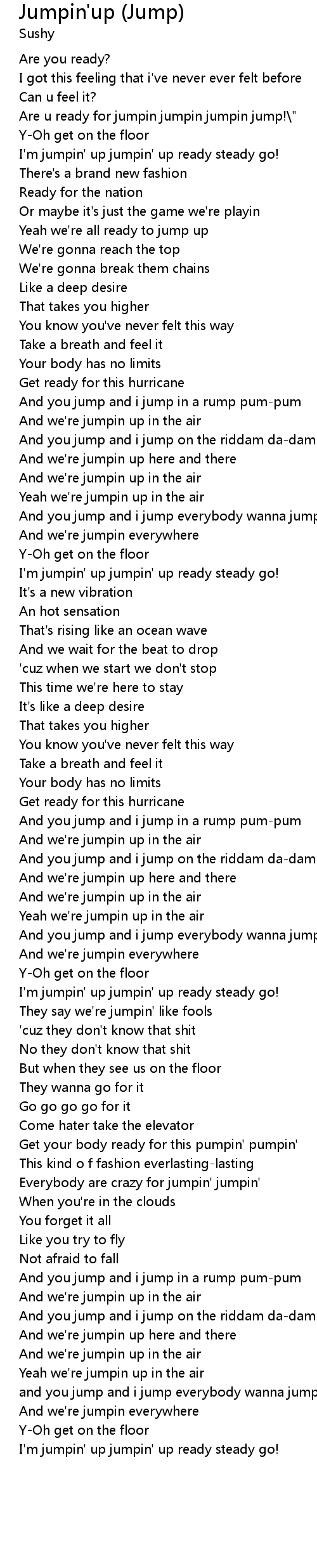 and you jump and i jump everybody wanna jump |