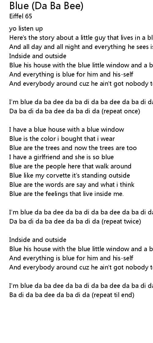I'm blue da ba dee da ba di da ba dee da ba di da d ba dee da ba di da ba dee |