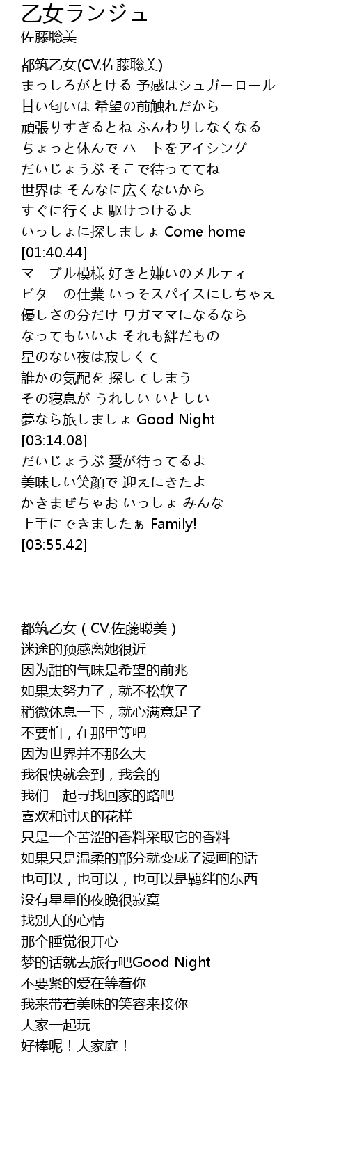 | [00:00.01] | 都筑乙女(CV.佐藤聡美) |