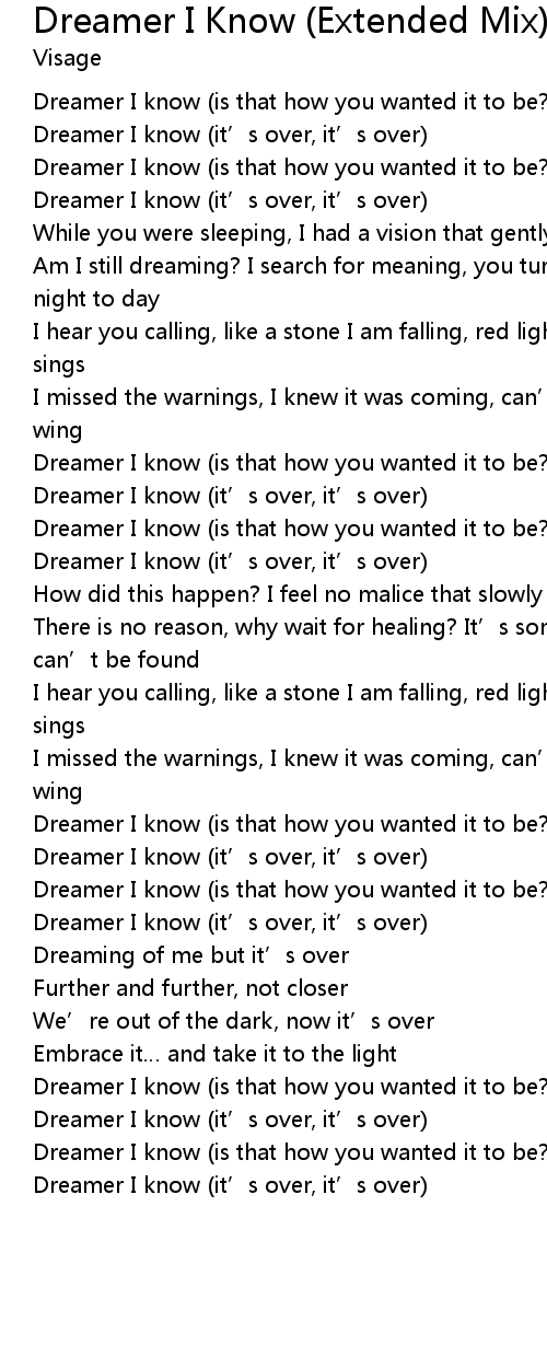 | [04:20.42] | Dreamer I know (it’s over, it’s over) |