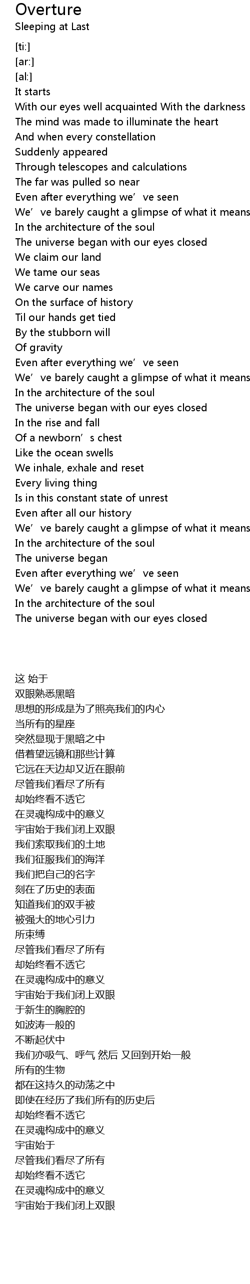 | [02:51.03] | In the architecture of the soul |