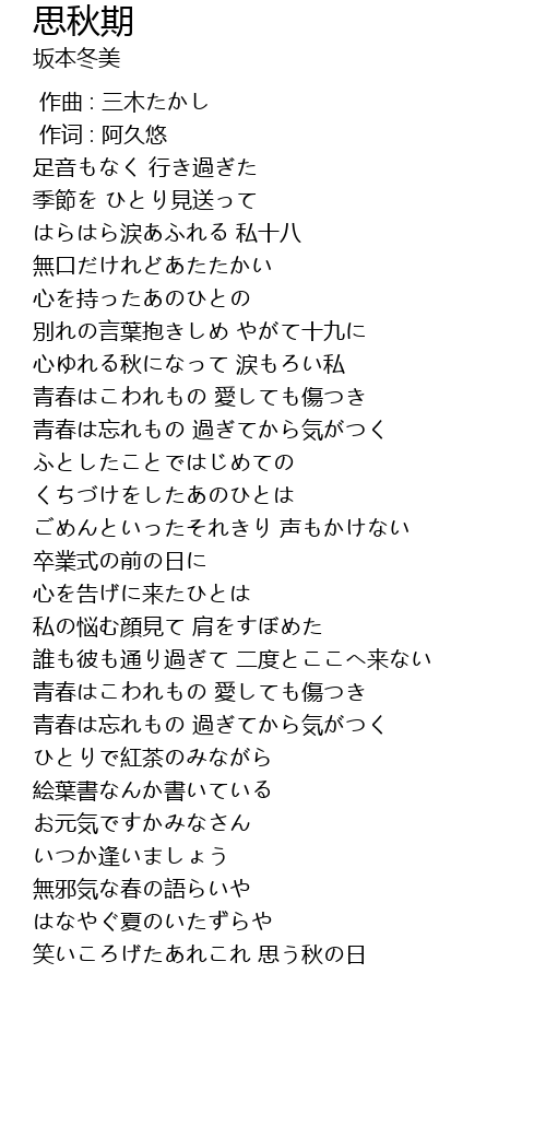 | [03:56.65] | 笑いころげたあれこれ 思う秋の日 |