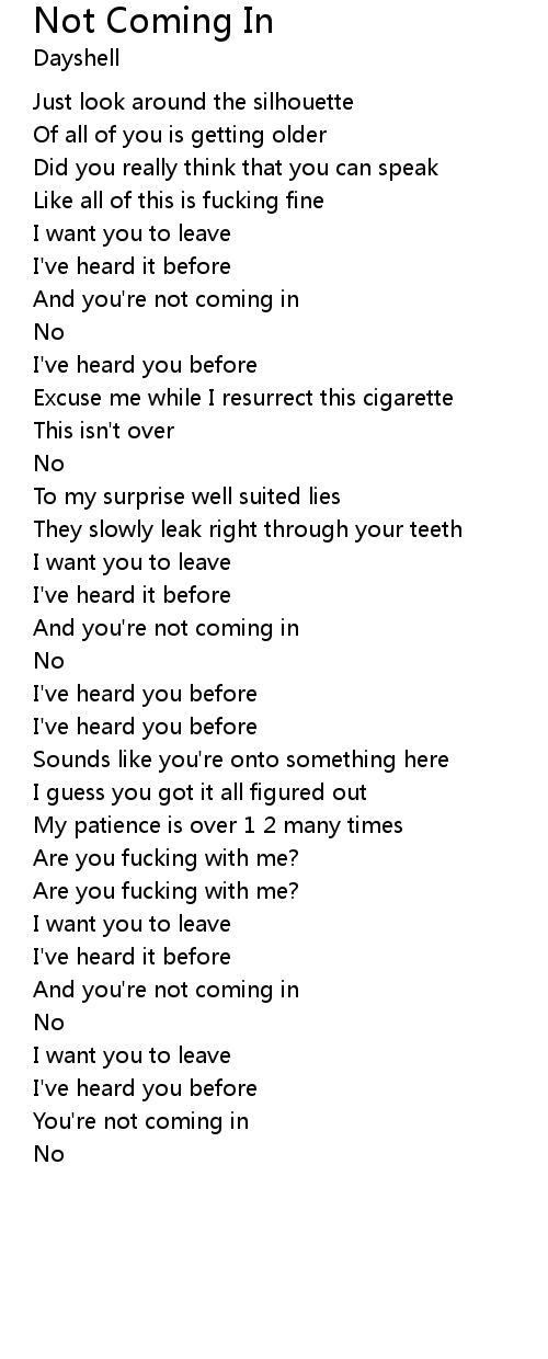 | You're not coming in | |