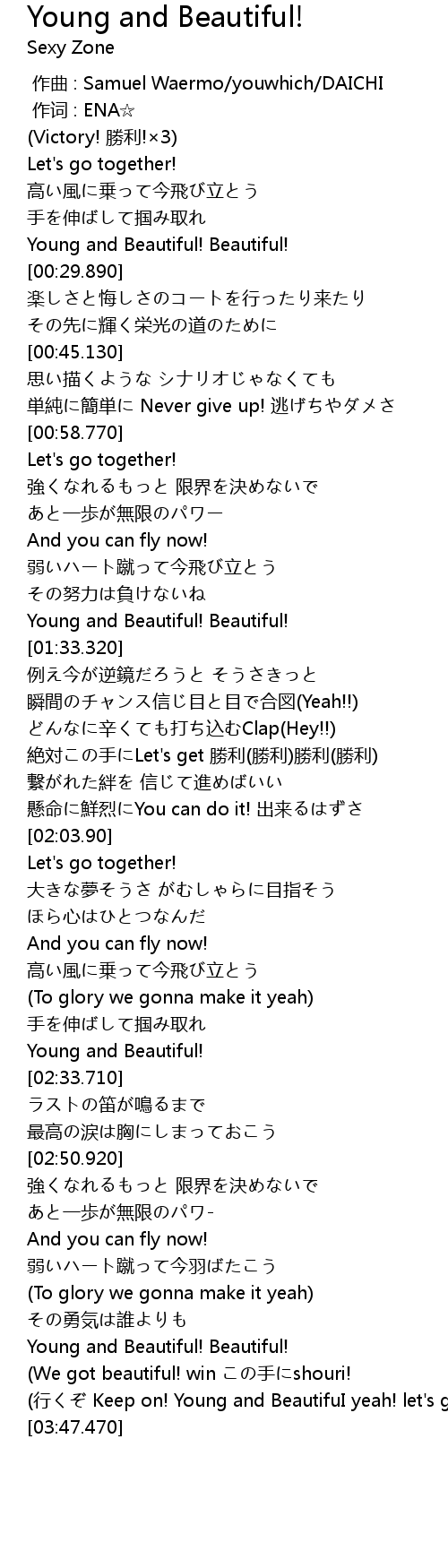 | [03:38.800] | Young and Beautiful! Beautiful! |