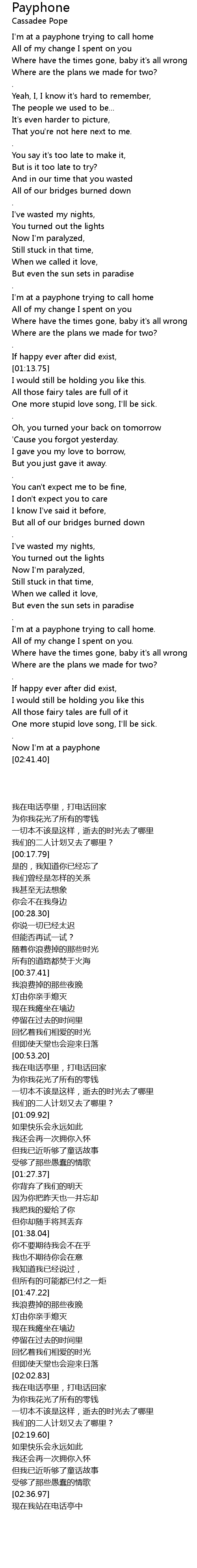 Now I'm at a payphone |
