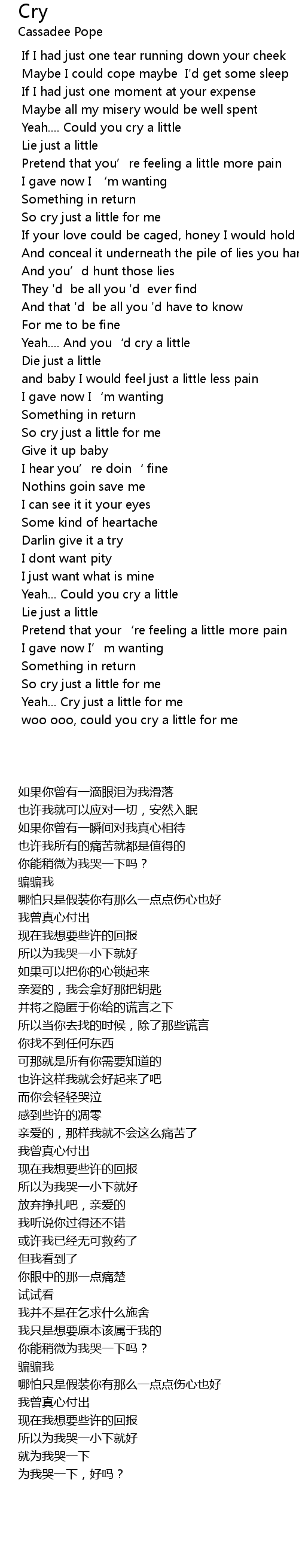 | [02:01.590] | So cry just a little for me |