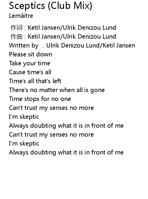 | Song | Sceptics (Club Mix) |