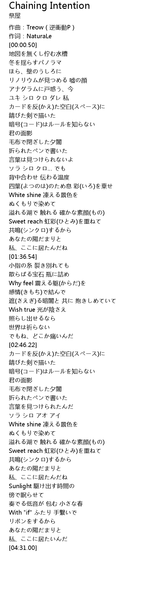 | [00:00.00] | 作曲:Treow(逆衝動P) |