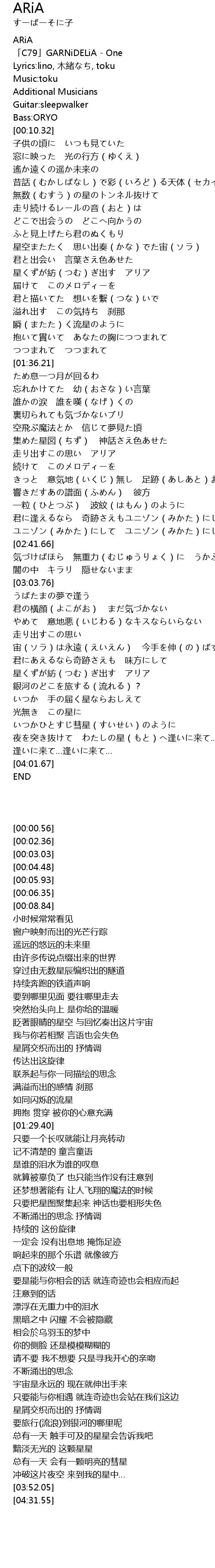 | [00:55.36] | 星空またたく 思い出奏(かな)でた宙(ソラ) |