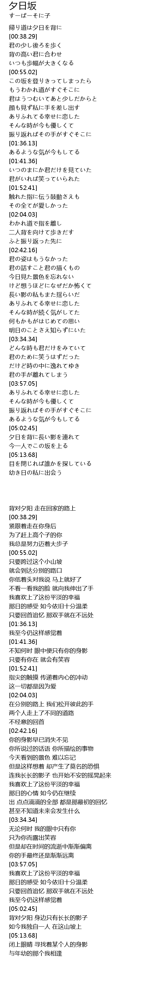 | Song | 夕日坂 |