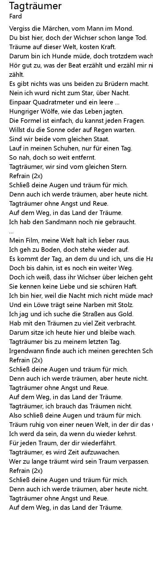 | Tagtr umer, ich brauch das Tr umen nicht. | |
