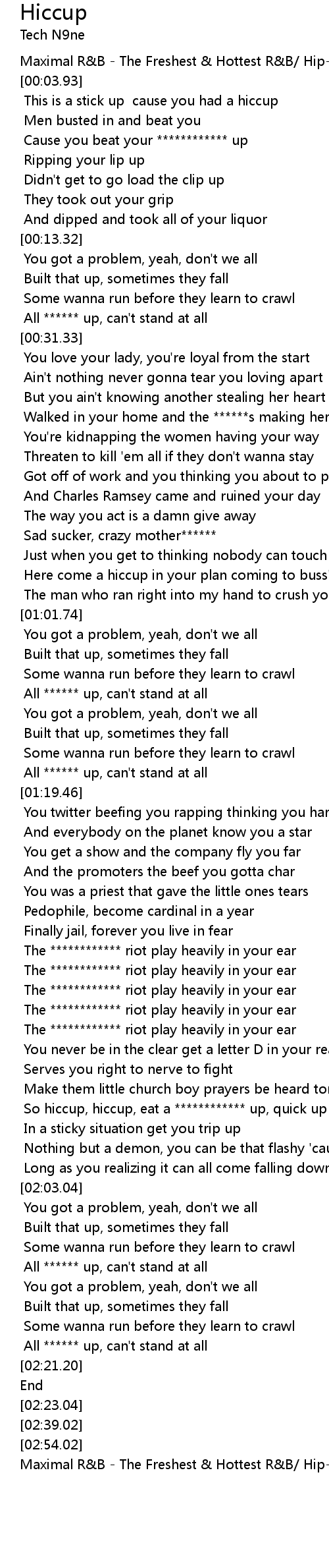 So hiccup, hiccup, eat a ************ up, quick up |