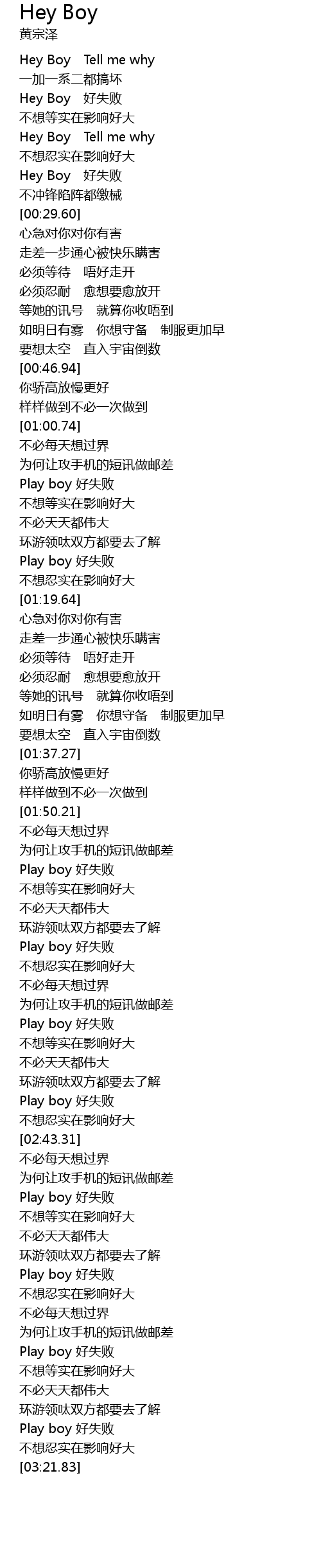 | [00:25.47] | Hey Boy hǎo shī bài |