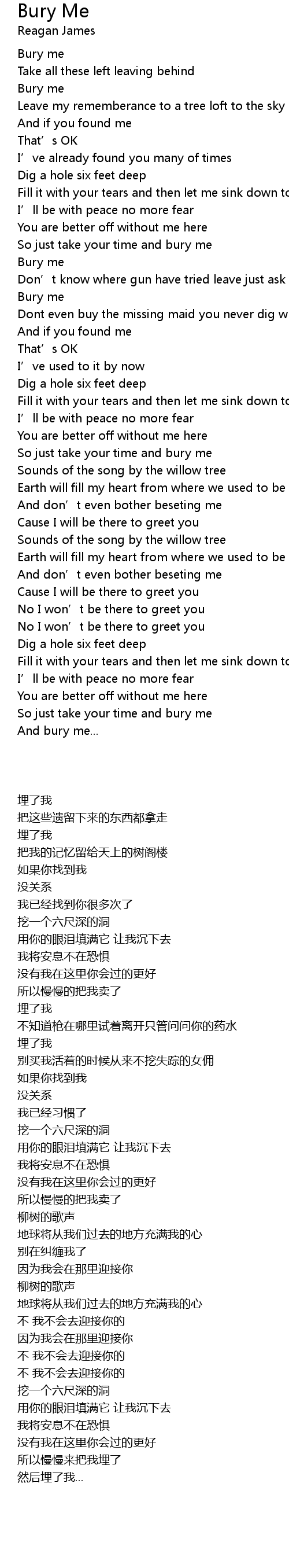 | Song | Bury Me |