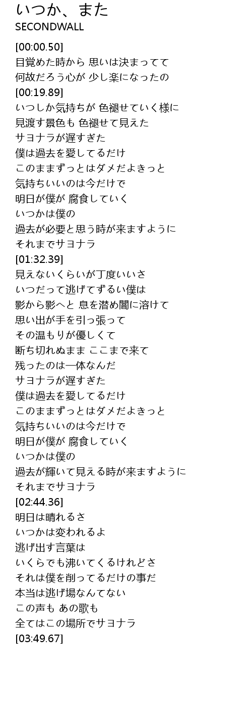| [02:04.58] | 僕は過去を愛してるだけ |