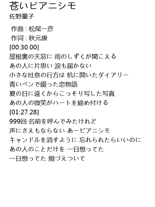 | [02:05.92] | 声にさえもならない あーピアニシモ |