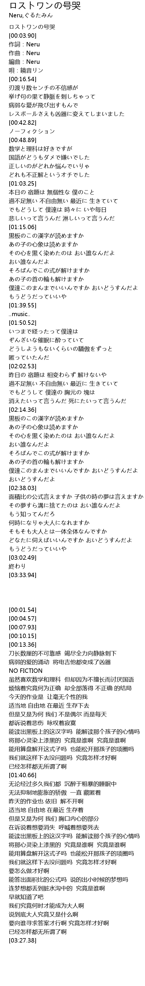 | [02:20.53] | その心を黒く染めたのは おい誰なんだよ おい誰なんだよ |