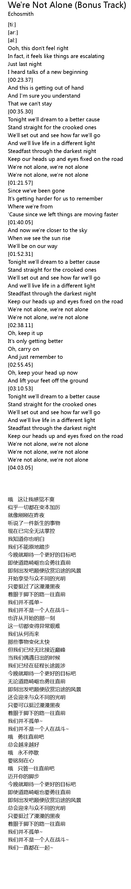 We're not alone, we're not alone |
