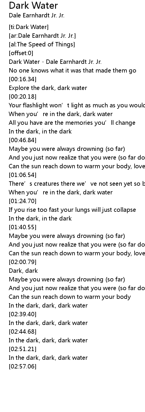 | [00:01.02] | Dark Water - Dale Earnhardt Jr. Jr. |
