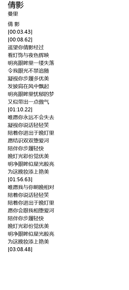 | [00:45.58] | níng shì nǐ bù lǚ duō yōu měi |