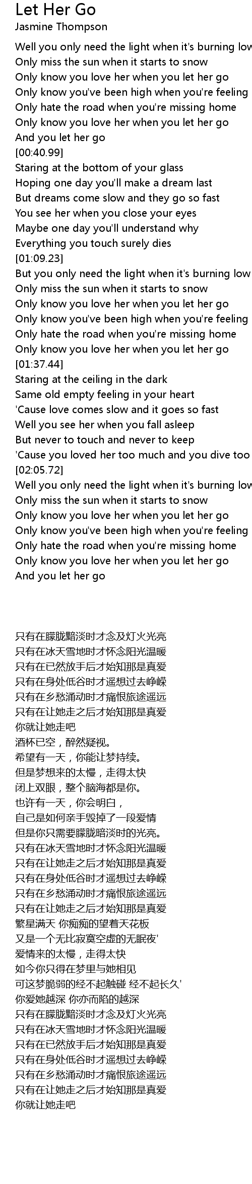 Only know you love her when you let her go |