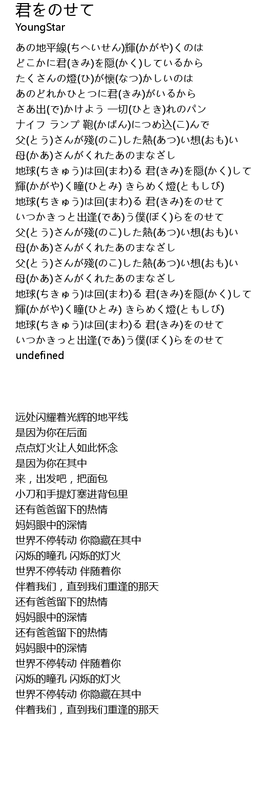 | [02:39.24] | 地球(ちきゅう)は回(まわ)る 君(きみ)をのせて |