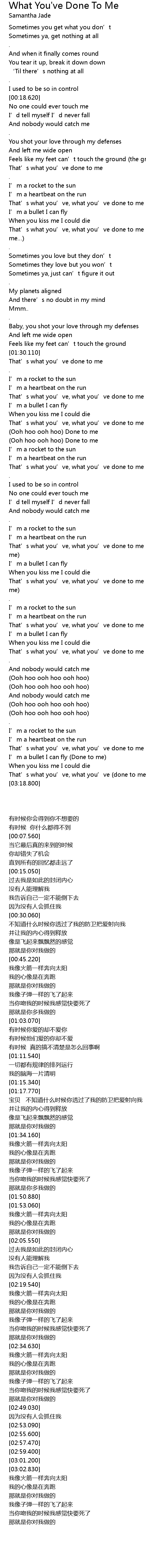 | [02:23.030] | That' s what you' ve, what you' ve done to me ' ve Youdone to me |