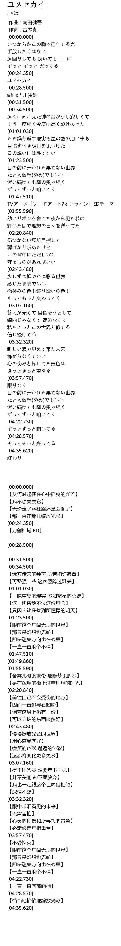 | [01:49.860] | TVアニメ「ソードアート?オンライン」EDテーマ |