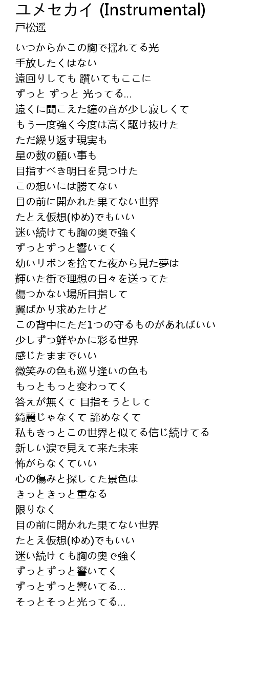 | 私もきっとこの世界と似てる信じ続けてる | |