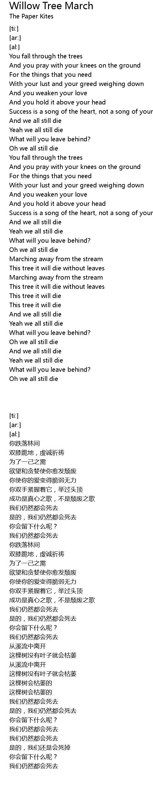 Oh we all still die |