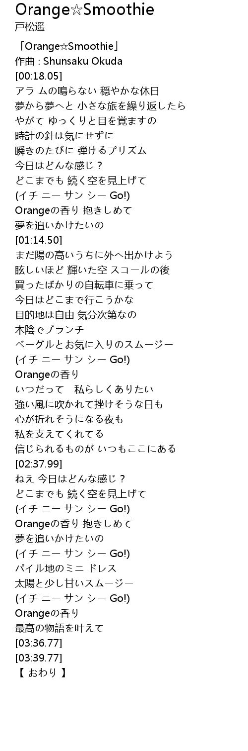 | [00:01.05] | 「Orange☆Smoothie」 |