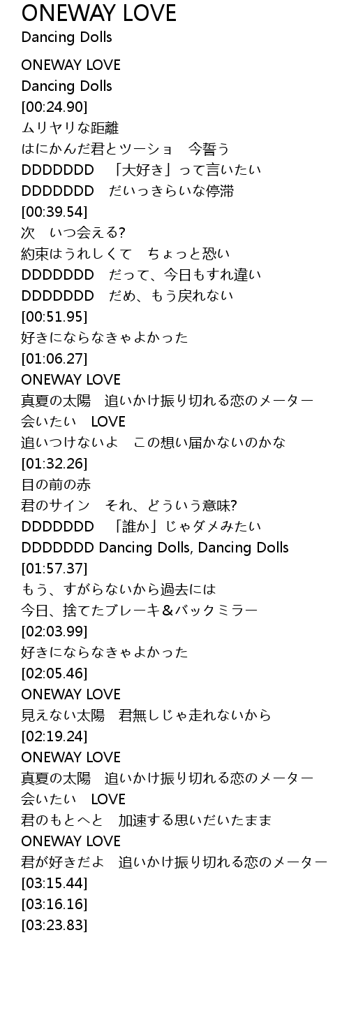 | [00:45.83] | DDDDDDD だって、今日もすれ違い |