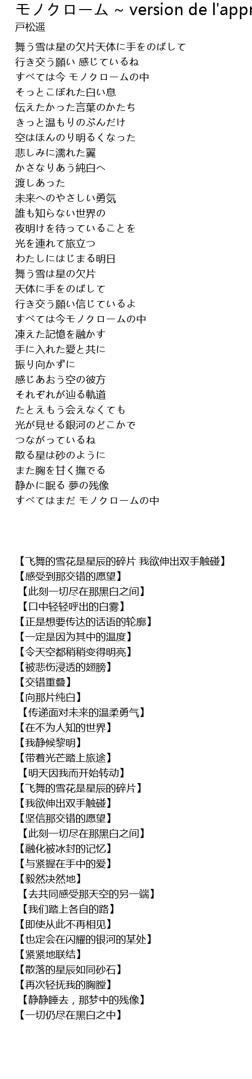 | [02:48.230] | すべてはまだ モノクロームの中 |
