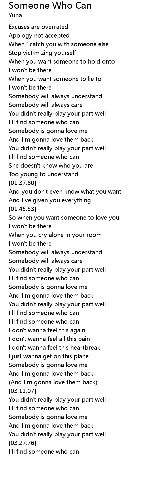 | [00:46.18] | Somebody will always understand |
