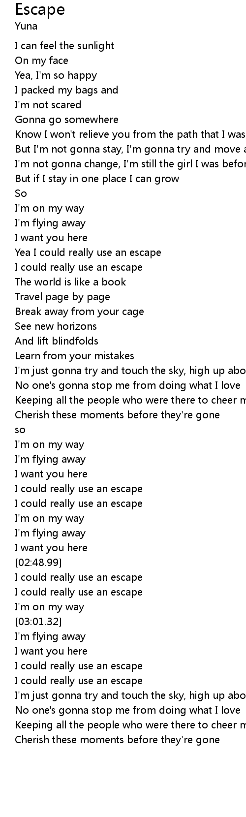 | [01:42.58] | I'm just gonna try and touch the sky, high up above |