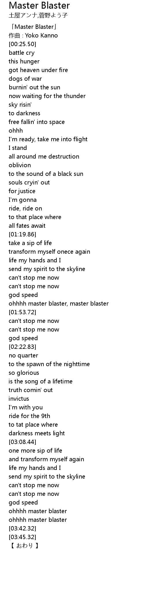 | [01:42.37] | ohhhh master blaster, master blaster |